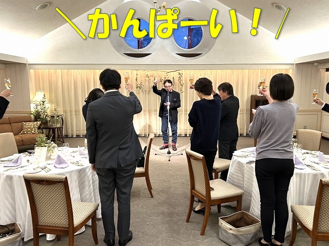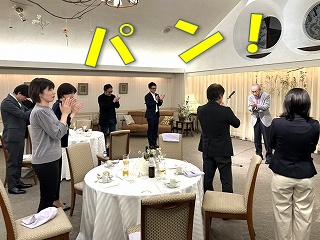 会長&西課長という珍しいコンビでの漫才で大笑いした後、一丁締めで締めます!