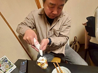 この一年間のあさまくんの思い出の写真、そして、その後、先輩たちがあさまくんの「あいうえお作文」を披露してくれました。