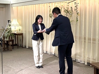 西部長からきらりんに、みんなが書いた寄せ書きが贈られました。