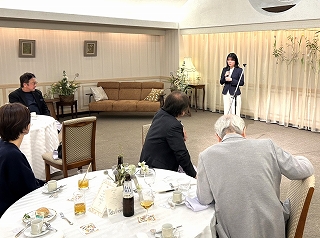 むつみホスピタルの皆さまに「木鶏会」の説明をするゆうこりん。