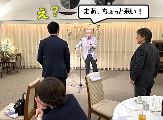 締めの前に、突然、西課長が呼ばれて「漫才」状態に(笑)