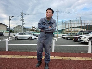 ってことで、支援学校に集まってきた製品管理のメンバーたち。 むぐむぐは「つなぎ」の作業服でヤル気MAX! すさまじい寝ぐせもヤル気MAX! |