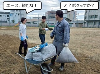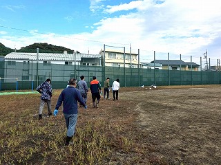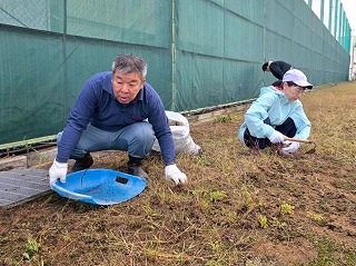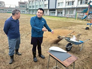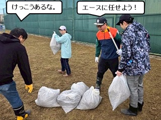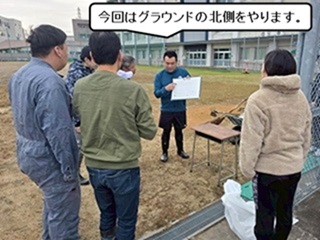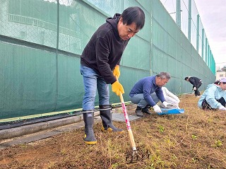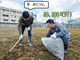 今回、グラウンドの北側の除草作業となったのには「訳」があるんです。 |