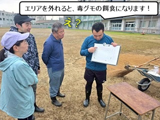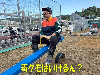 さすがに毒グモは怖いので、今回はグラウンドの北側でがんばります! |