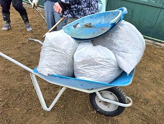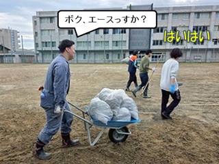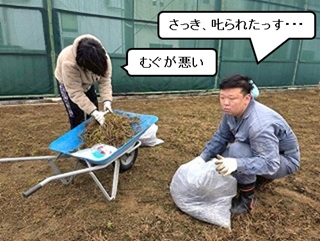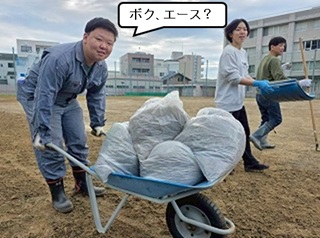 作業再開! 刈った雑草を回収していきます。 どうやらここはエースに任せるみたい。 |