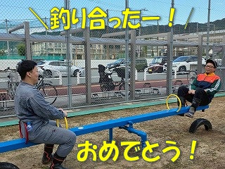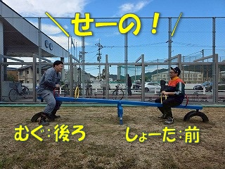 めっちゃステキな木箱をいただいたしょーた。 なぜかしょーたとエースでシーソー。 どうやら「どこで釣り合うのか」を実験するようです。 |