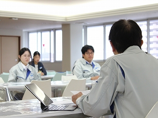 この社長講話では、昨年の5月以降に入社した社員たちにも参加していただいています。