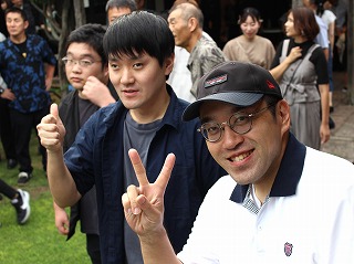 帰り際、コージーリーダーがやすくんを引き寄せツーショット!