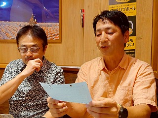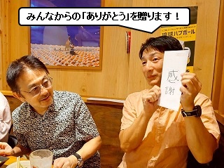 せっかくなんで、チームメイトみんなが、自分で書いた「ありがとうカード」を読むことに。
