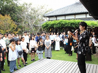 風雅庭の広いお庭に集まるみんな。