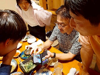 みんながのぞき込んでいるのは、社長のスマホ。
