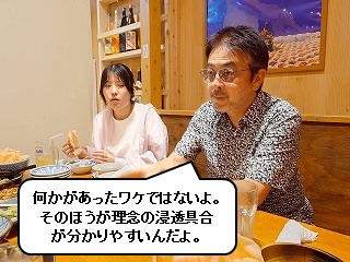 社長からは、「そうしたほうが、新しく入った方がどれだけ理念浸透したかを推し量ることができる」とのことでした。