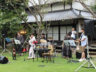 去年までは、夕焼けと共にライブが始まりましたが、今年はすっかり日が落ちています。