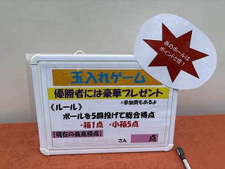 2メートルくらい離れたところから、箱にボールを投げ入れます。 |