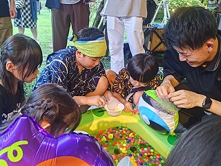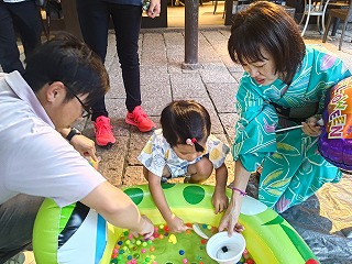 3つのお子さんイベント、ラストは生産技術メンバーたちの運営する「スーパーボールすくい」! |