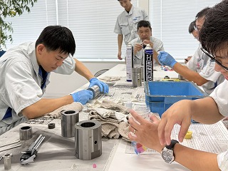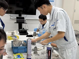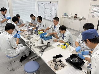 ねんどを準備している間、当社で実際に使用した金型をキレイにして、ねんどを入れる準備をします。 |