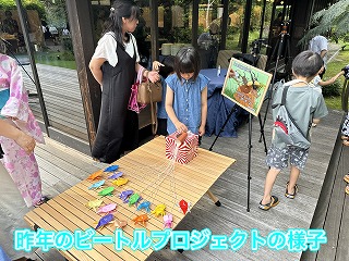 まずは、生産技術係とサマーパーティーの歴史から… サマーパーティーのお子さん向けイベントとして生産技術係は、毎年「ビートルプロジェクト」という、カブトムシをお子さんたちにプレゼントする企画をしていました。 |