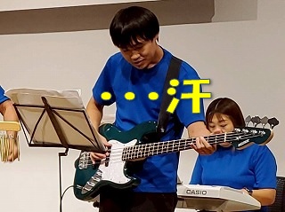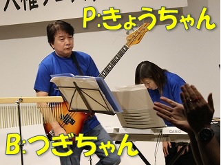 3曲目のベースを担当するつぎちゃんは準備万端! 半分だけ見えるつぎちゃんに、 |