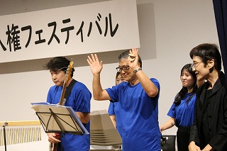 そろそろフィナーレ!会場の手拍子も、 ちなみに、見切れてしまっていますが会場の右端に手話で歌詞を伝えてくださっている方が います。聴覚が不自由な方も楽しめるように ご配慮くださいました。 |