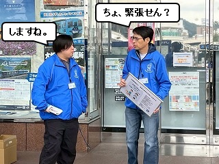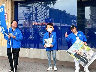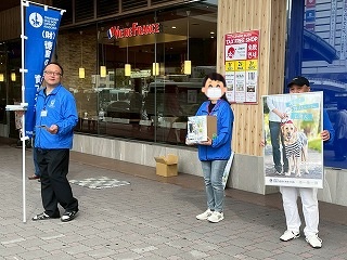 11月最初の日曜日、この日、徳島駅前で「徳島の盲導犬を育てる会」の方々が主催する「盲導犬支援街頭募金」活動があり、いつもサポートしている伸線係メンバーたちが、今回の募金活動をサポートしました! |