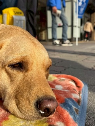 実際の盲導犬も一緒に募金活動をしてくれました! この募金で、盲導犬を必要としている方々のお役に立つことが出来たらうれしいです! |