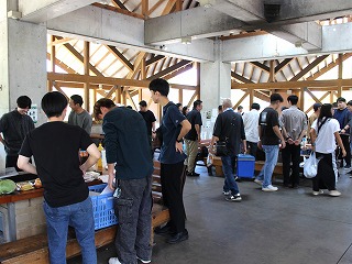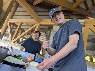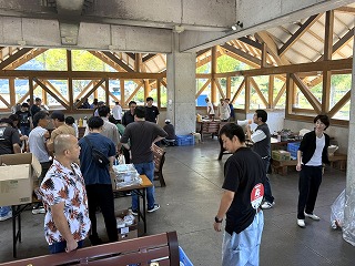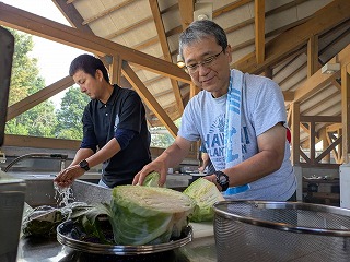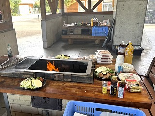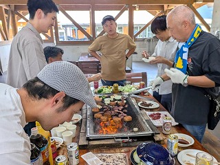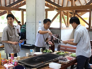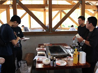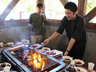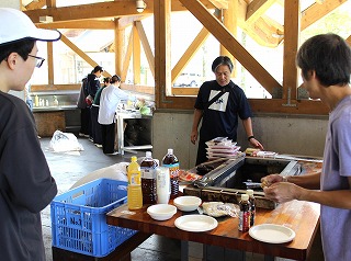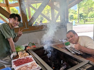 その頃、バーベキュー会場の「四国三郎の郷」では、先発隊がバーベキューの準備をしてくれていました。 |