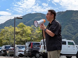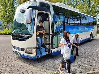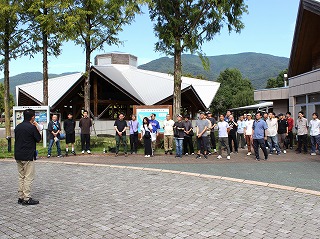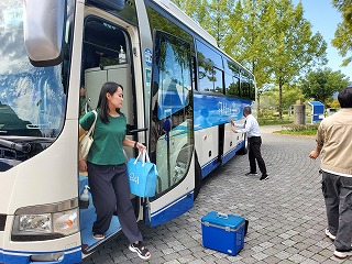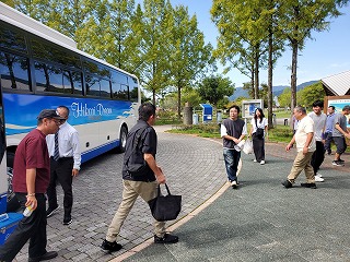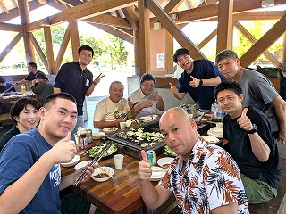 そして、土成第1工場でも10名ほど乗り込んで、いざ、バーベキュー会場の「四国三郎の郷」へ! |