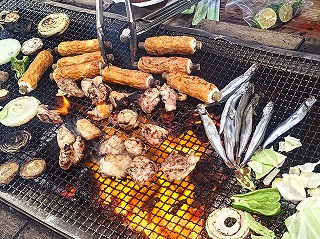 コチラのテーブルでは、シシャモやちくわを焼いてる!うまそー!