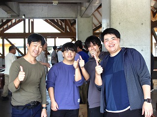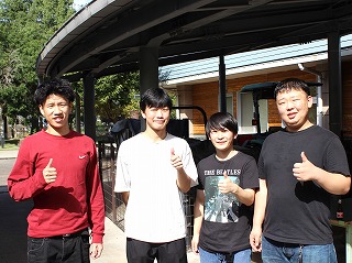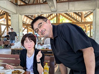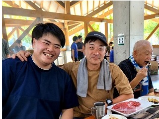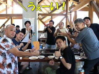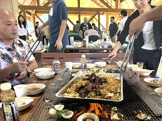 まさにバーベキュー日和の下で、もりもりお肉を食べながら盛り上がっています!