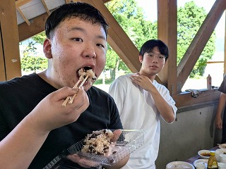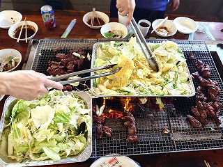 Wの居たテーブルでは、バーベキューの残り物を投入する豪快さ(笑)