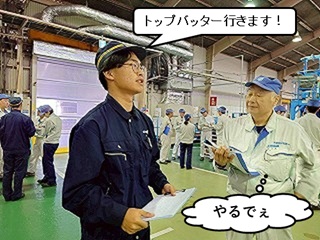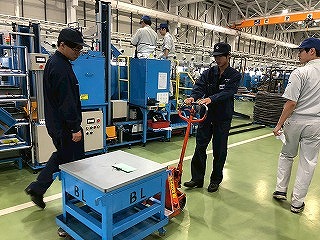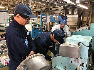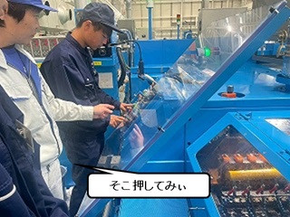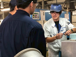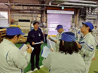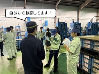 朝礼後はすぐに、土成第1工場へ移動し現場での研修スタート!