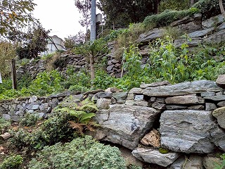 山の上とは思えない立派な石積みが圧巻です。 この石積みに沿って菊の花が植えられており、 花の時期はとても華やかな景色になるそうです。 |
