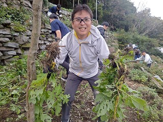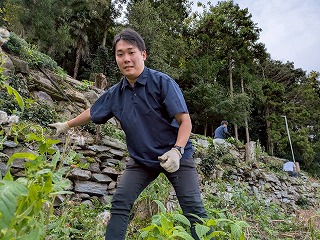 とくしま農山漁村応援し隊 阿波川村氏発祥の地の石積み除草作業
