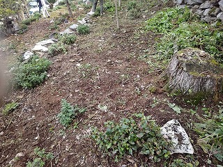 実際に除草を行ったのが↓の写真周辺になります。 その昔、この場所にあった山城の石積みが残ったものだそうで、歴史を感じます。 |