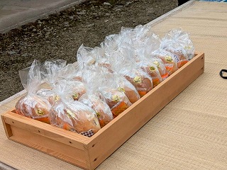 活動終了後、地元の方のご厚意でパンやお菓子、お茶を頂きました。 甘味と水分が疲れた体に染みわたります。 |