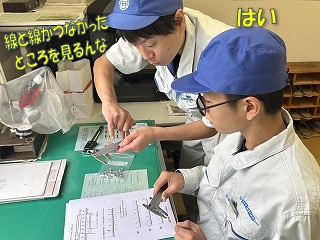 はじめのうちはぎこちない動作だった生徒さんですが、すぐにコツをつかんで、スムーズに外観検査をしてくれました!