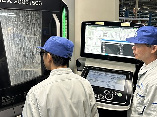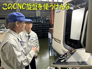 工作係で最新のCNC旋盤を使って加工します。