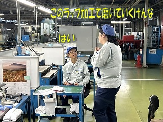この「ペン立て作り」では、工作係内で使用している実際の加工伝票を発行し、その伝票を見て、各加工工程を回ってもらいました!