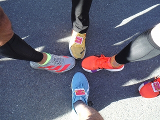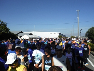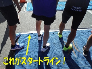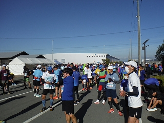 そして、Wはマラソン大会で初めて「スタートラインから2列目」という場違いな位置からスタートすることに(汗) いったいどういう区分の仕方でWがこんな位置にいるんでしょう(笑) なので、あんまり邪魔にならないよう、端っこに並んでいます。 |