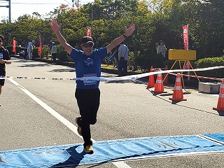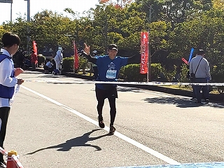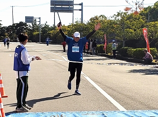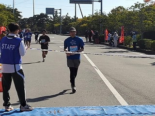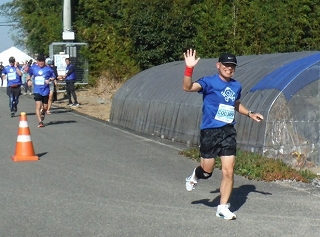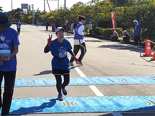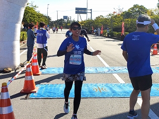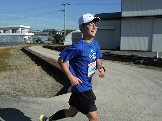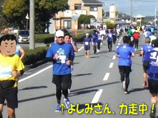 実家がコースのすぐ近くにあるというよしみさんも、久しぶりのハーフマラソンを力走中!