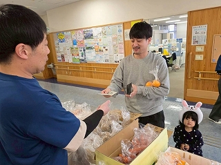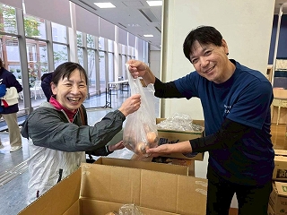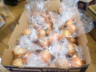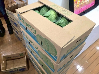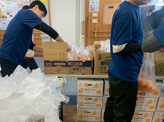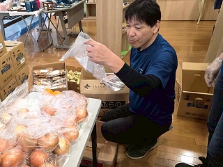 フェスタ開始前、段ボールに入っている野菜を小分け袋に入れていきます。 それにしても、値段が激安! |