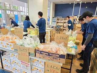 今回のミッションは、野菜販売のお手伝いだそうです。 製品管理のみんなが「八百屋さん」になります! |