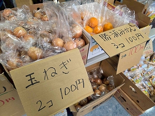 激安八百屋さんなので、オープンすぐから大盛況! 「3コ100円」の勝浦みかんは、マジでお買い得! |