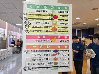 売り物リストが掲示されていたんですが、どんどん「完売」で消されていきます。 |