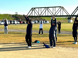 3つのチームが出来上がったら、改めてルール説明。 ルール説明が終わったら、さあ、準備運動します! |