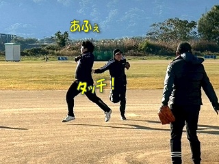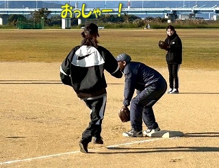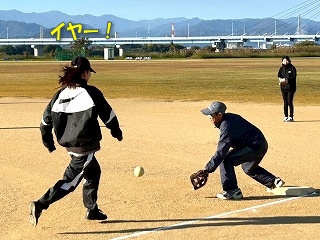 せっかく出塁したすずえマンでしたが、タッチプレーを食らいます(笑) みったか、見事なファインプレー! |