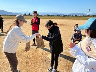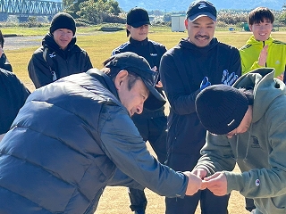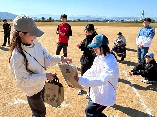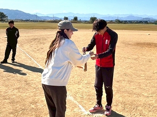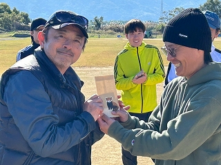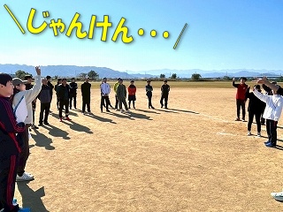 優勝チームに「賞品」があるには、あるのですが・・・ ②チームの中から、「じゃんけん大会」に勝ち残った3人だけに賞品があります。 ってことで、たにもとさんとじゃんけん勝負です! |