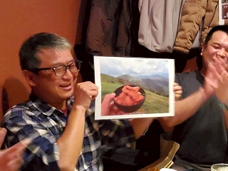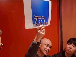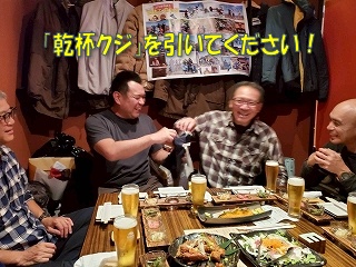 それでは恒例の「乾杯クジ」をよしみさんに引いてもらいます。 |