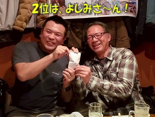 次は2位の発表・・・と思いきや、同票1位が二人! よしみさんとWです! おっしゃー! 「妖精さん」バトルは、Wが制しました! |