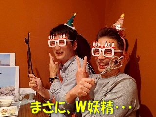 全然誕生日でもないのに「妖精」スタイルを強いられるW・・・。 |